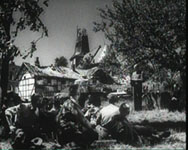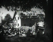 Für diesen Film wurden mehrere Szenen im schon teilweise zerstörten Wollseifen gedreht Aus dem Film: links ist der zerschossene Kirchturm zu erkennen, rechts ein fast zerstörtes Haus