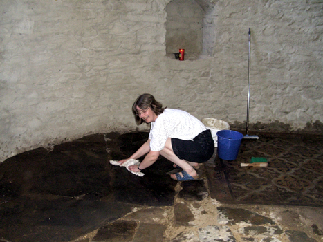 auf dem Weg zum Putzen in die Kirche..