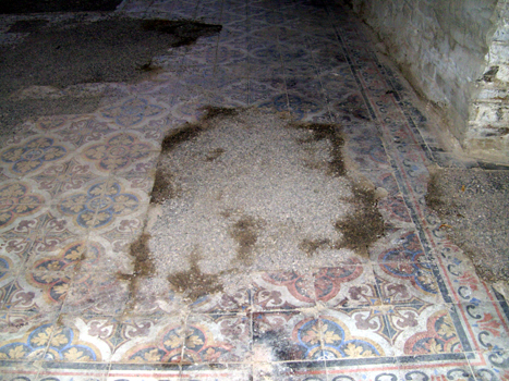 Es besteht die Aussicht, die fehlenden Fliesen demnächst ersetzen zu können, da der Hersteller ausfindig gemacht werden konnte, der vermutlich noch über Restbestände verfügt.