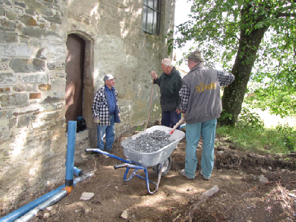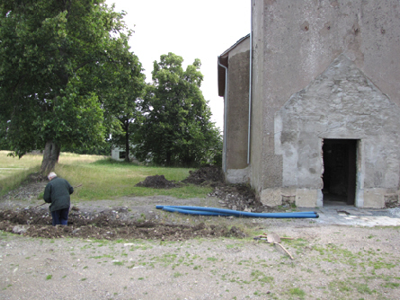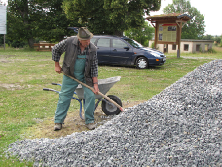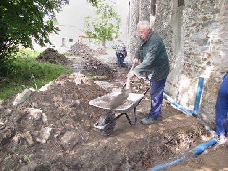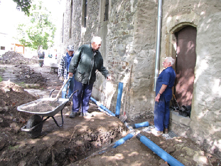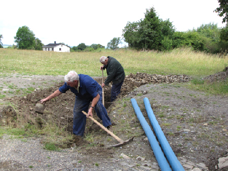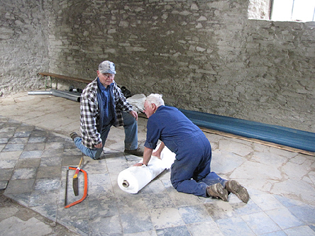 Abrollen des Vlieses zur Abdeckung der Rohre