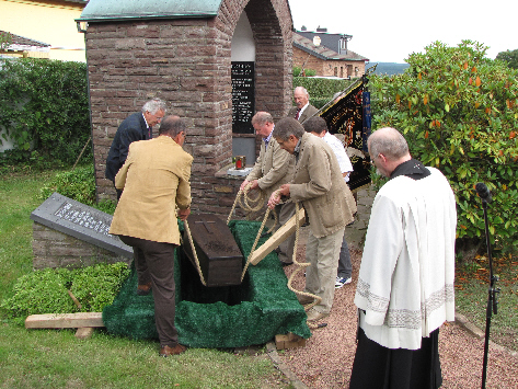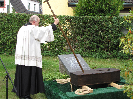 Pfarrer Cuck segnet die Gebeine vor der Beisetzung
