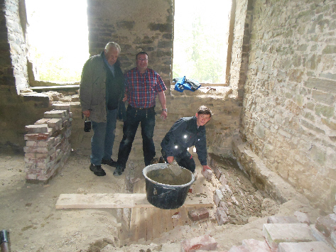 Das eingestürtzte Kellergewölbe wird eingeschalt