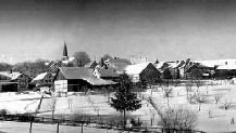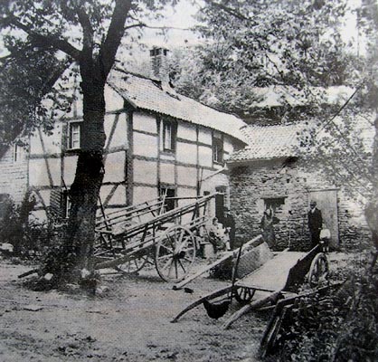 Die ersten Siedler hier im Urfttal waren die Römer. Rund um das Gehöft Lehmkaul, das heute vollkommen verschwunden ist, fand man im Boden römische Dachziegel und Reste von Töpferwaren. Rechts im Bild das Gehöft Lehmkaul, und der kleine Junge im weißen Hemd rechts, das ist Karl Heup, heute stellvertretender Vorsitzender des Fördervereins Wollseifen e.V.