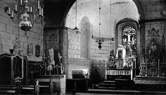 das Innere der Kirche mit beiden Seitenaltären vor der Renovierung