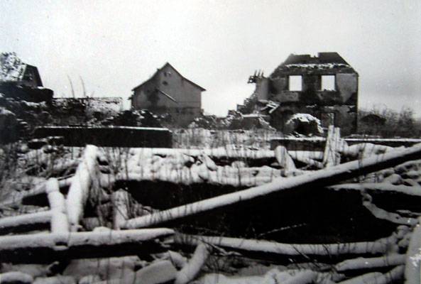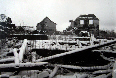 im schon stark zerstörten Ort ist das Trafohäuschen zu erkennen